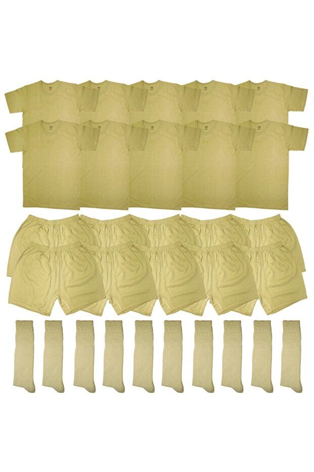 Baggor 10'lu Nano Renk Yarım Kollu Atlet Fanila + Boxer + Çorap Acemi Bedelli Askeri Malzeme Seti