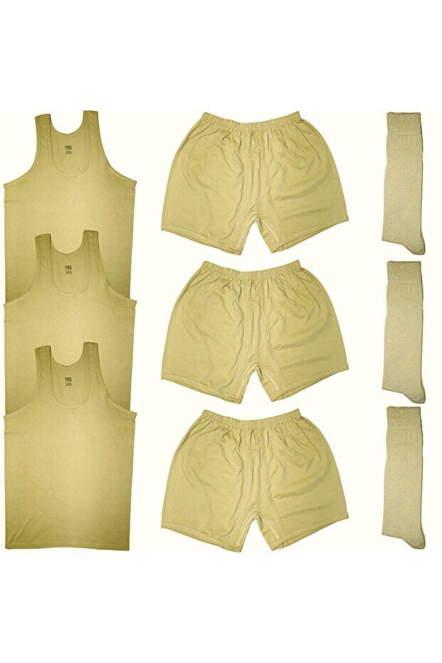 Baggor 3'lü Nano Renk Askılı Atlet + Boxer Iç Çamaşırı + Çorap Acemi Bedelli Askeri Malzeme Set