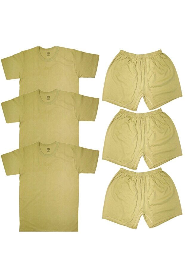 Baggor 3'lü Nano Renk Yarım Kollu Atlet Fanila + Boxer  Acemi Bedelli Askeri Malzeme Seti
