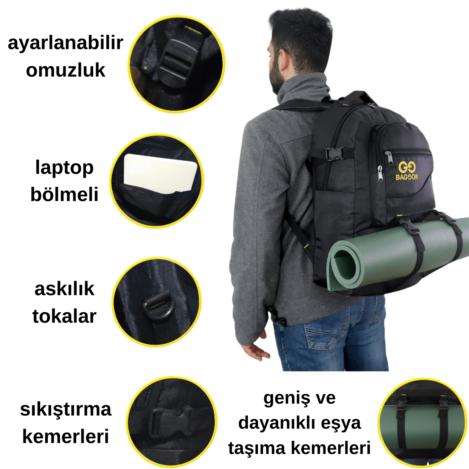Mat,ürüne dahil değildir.İsterseniz mağazamızdan alabilirsiniz. Rahat Sırt Çantası