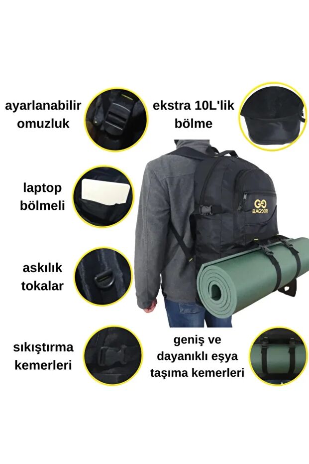 Çok Amaçlı Kamp Seyahat Sırt Çantası Birçok cep ve özelliklerle dolu geniş sırt çantası.